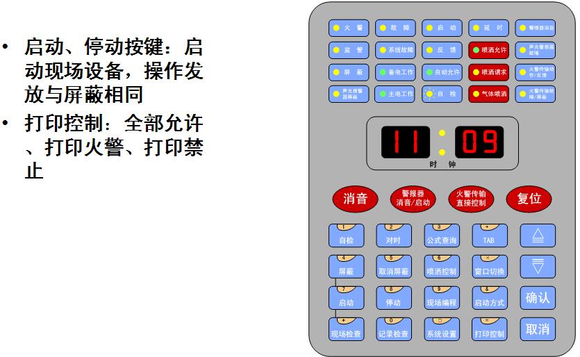 2.控制器配置64點手動消防啟動盤1塊,完成對總線制外控設(shè)備的手動控制;
