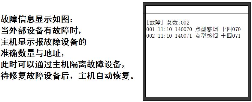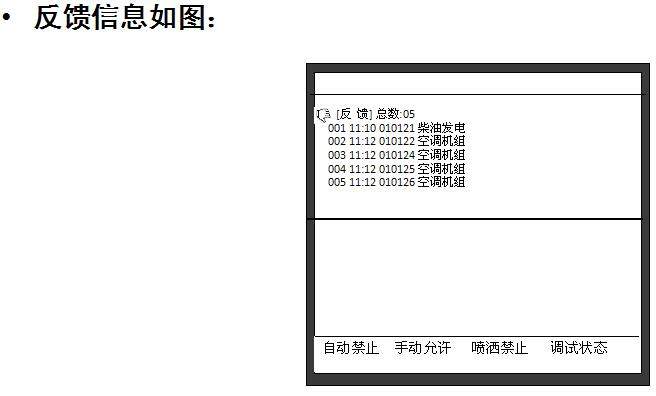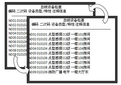 選中某一回路,按下“確認(rèn)”鍵,將顯示這一回路注冊到的各設(shè)備的信息,-上一行的設(shè)備高亮顯示;按任意數(shù)字鍵高亮消失,控制器處于總線設(shè)備檢查狀態(tài)