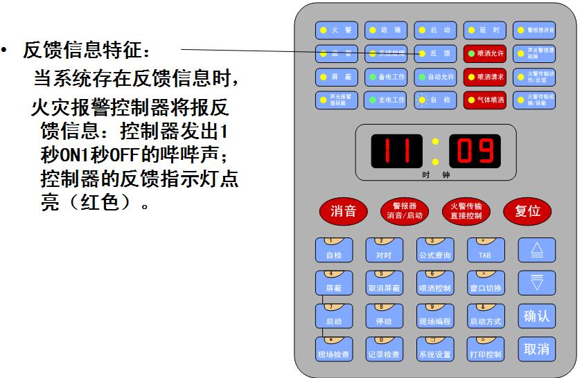 4.控制器可配置多塊手動消防啟動盤,完成對總線制外控設(shè)備的手動控制;可配置多塊14路直接控制盤,完成對消防控制系統(tǒng)中重要設(shè)備的控制;可擴(kuò)充消防廣播控制盤和消防電話控制盤,組成消防廣播和消防電話系統(tǒng);每個回路-多可同時配置4臺64點手動消防啟動盤+4臺14路直接控制盤+兩個消防廣播控制盤(或2個消防電話控制盤或1個消防廣播控制盤+1個消防電話控制盤)